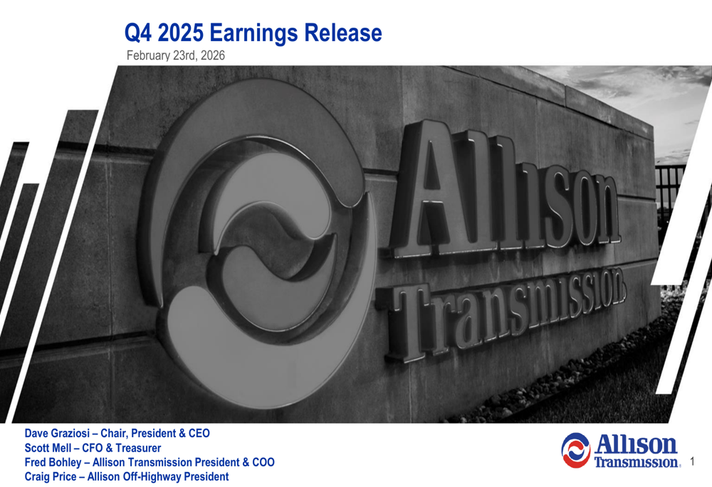 Allison Transmission Holdings, Inc., together with its subsidiaries, designs, manufactures, and sells fully automatic transmissions for medium- and heavy-duty commercial vehicles and medium- and heavy-tactical U.S. defense vehicles, and electrified propulsion systems worldwide. It offers transmissions for various applications, including distribution, refuse, construction, fire, and emergency on-highway trucks; school and transit buses; motor homes; energy, mining, and construction of off-highway vehicles and equipment; and wheeled and tracked defense vehicles. The company also provides its transmissions and electric propulsion solutions under the Allison Transmission brand name; and remanufactured transmissions under the ReTran brand name. In addition, it sells branded replacement parts, support equipment, aluminum die cast components, and other products necessary to service the installed base of vehicles utilizing its solutions, as well as defense kits, engineering services, and extended transmission coverage services to various original equipment manufacturers, distributors, and the U.S. government. The company was formerly known as Clutch Holdings, Inc. Allison Transmission Holdings, Inc. was founded in 1915 and is headquartered in Indianapolis, Indiana.